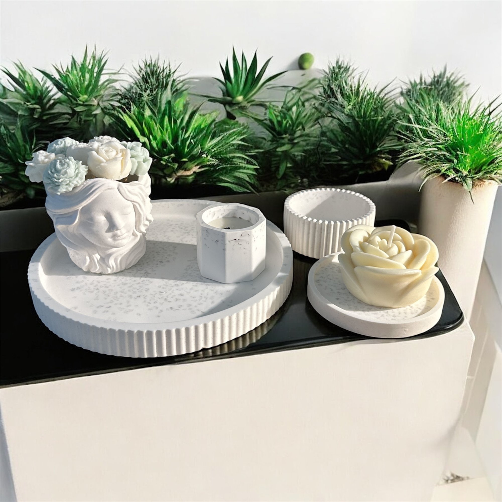 🏺 Bases and trays crafted from eco-friendly Jesmonite