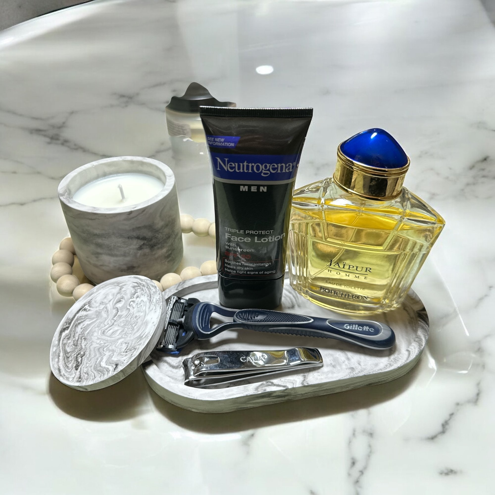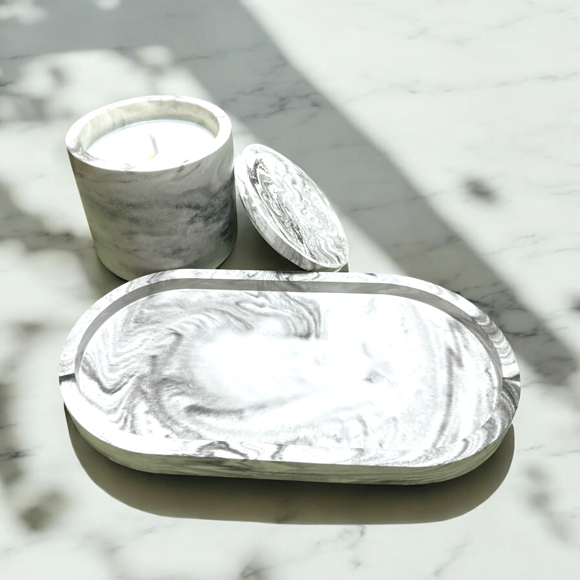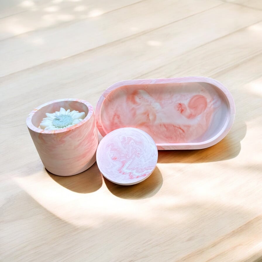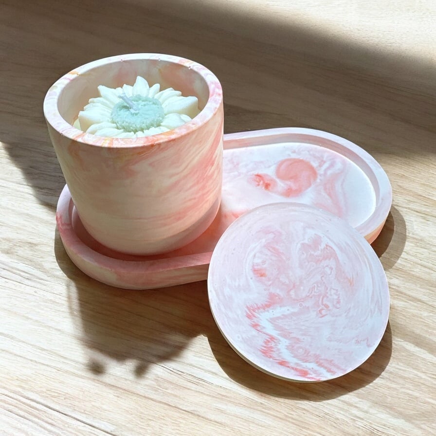 – 1 small candle in a jesmonite vessel